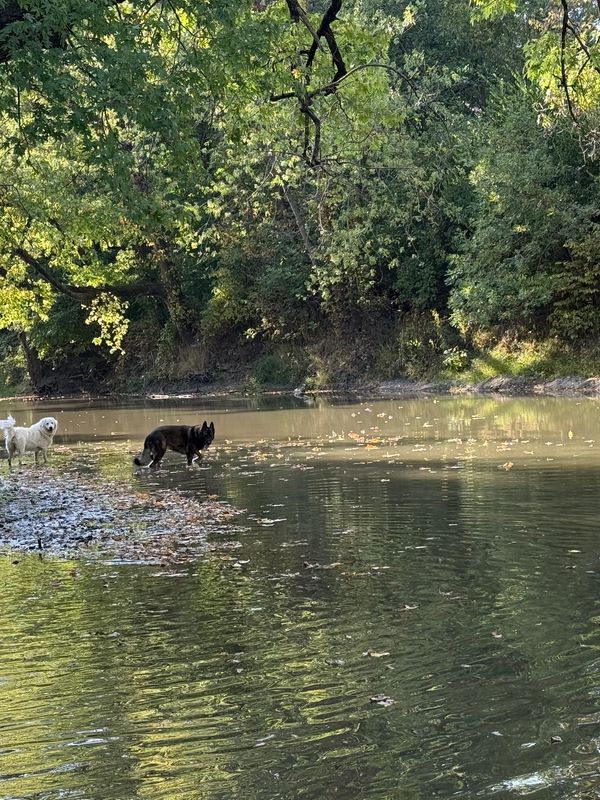 Osage and King love playing in the river.